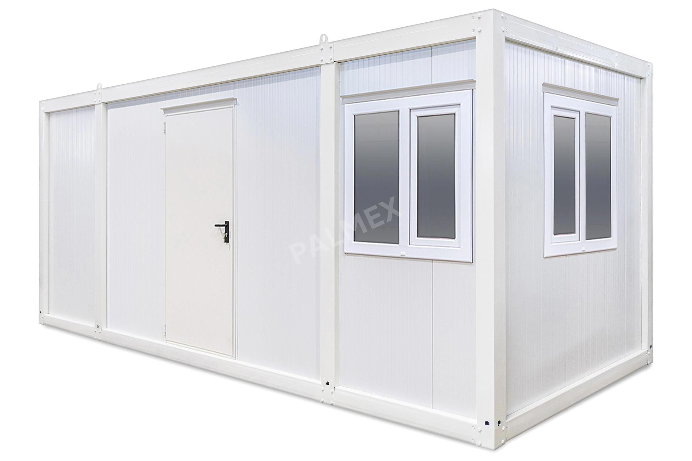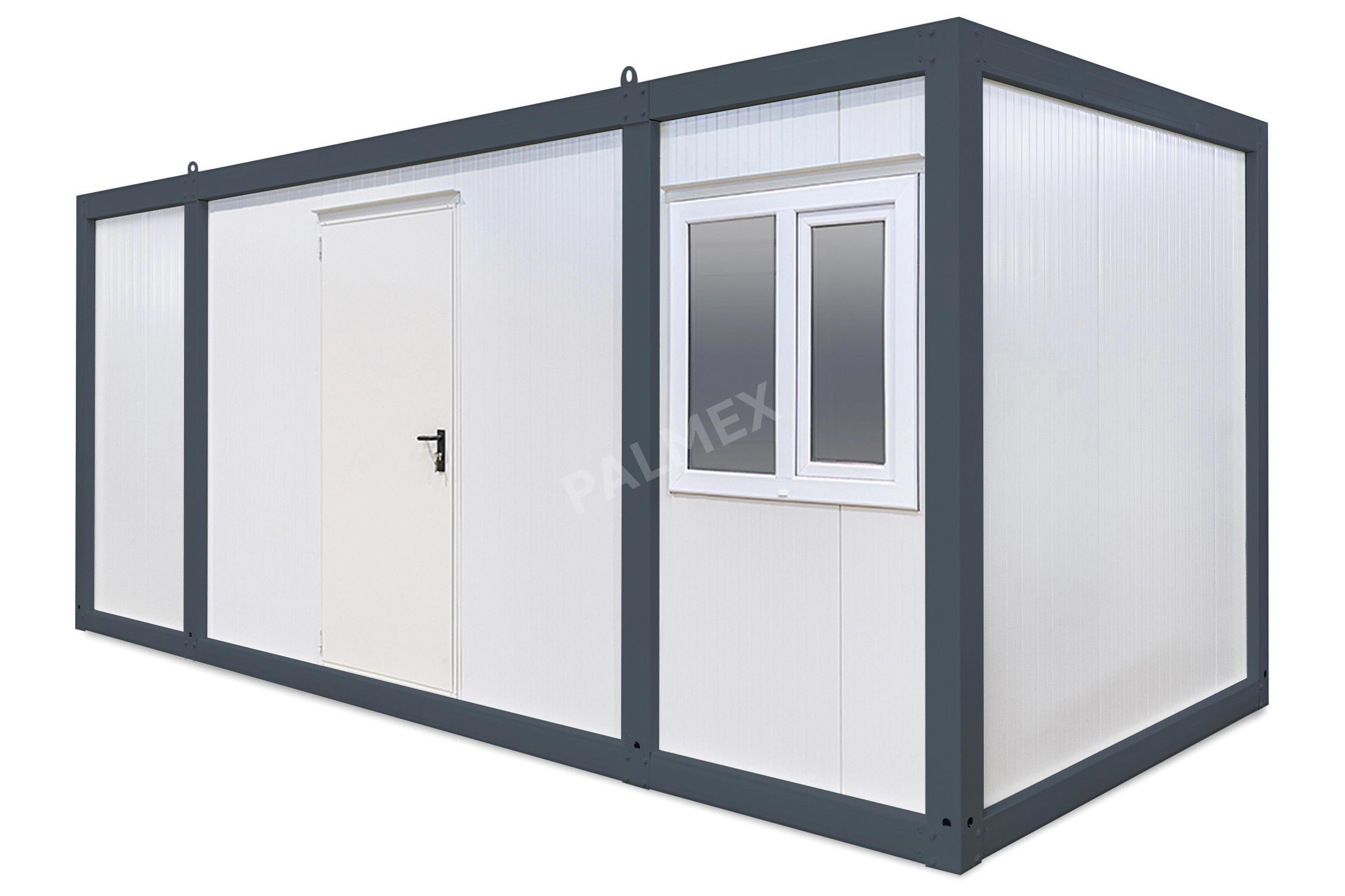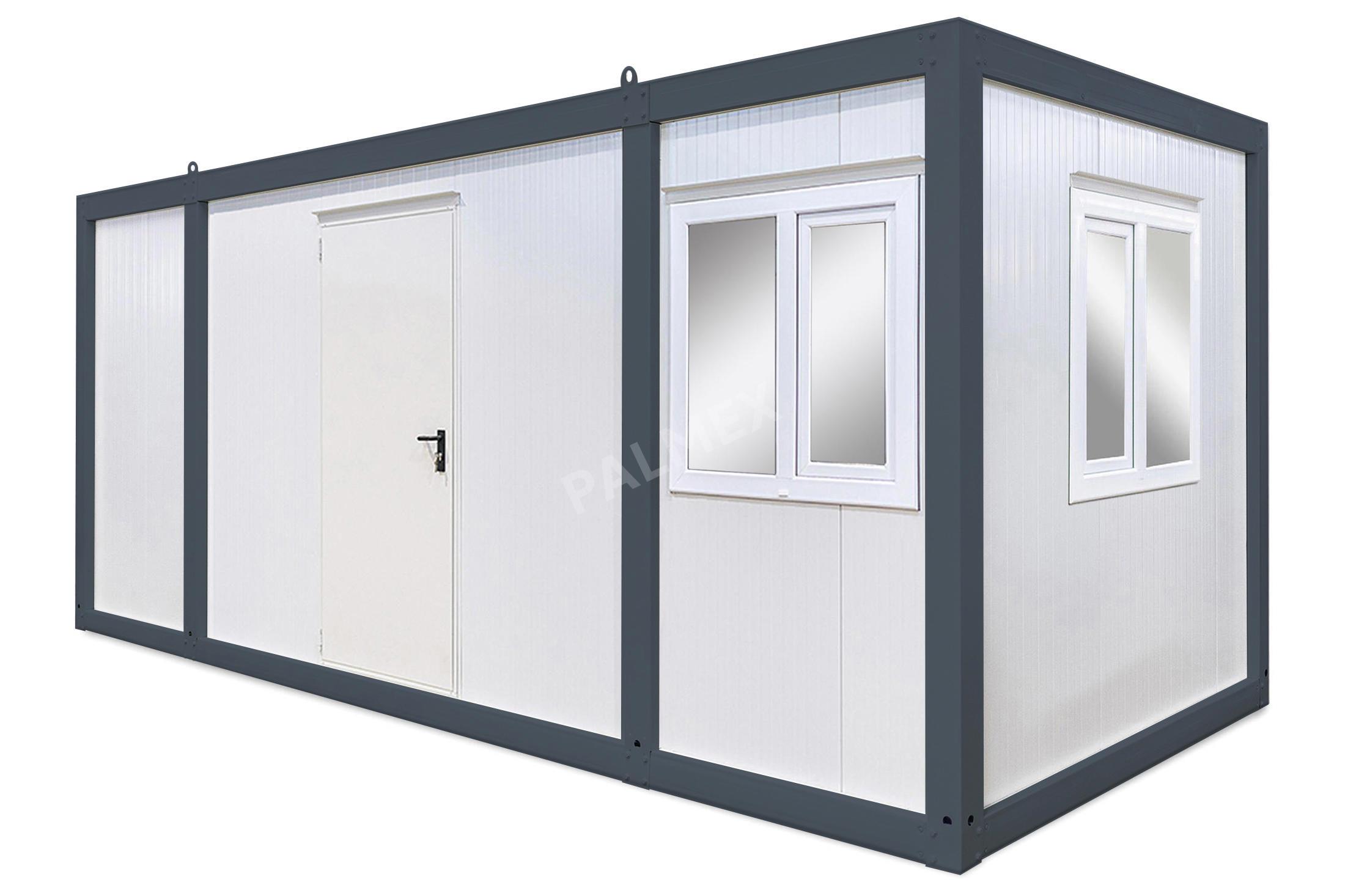 Acest Container de Santier de 6m HI-FLEX este solutia ideala pentru constructii. Structura metalica ii confera rezistenta si stabilitate, iar panourile sandwich asigura izolare termica si fonica. De asemenea, aceste containere pot fi personalizate si dotate conform nevoilor specifice proiectelor de constructii.