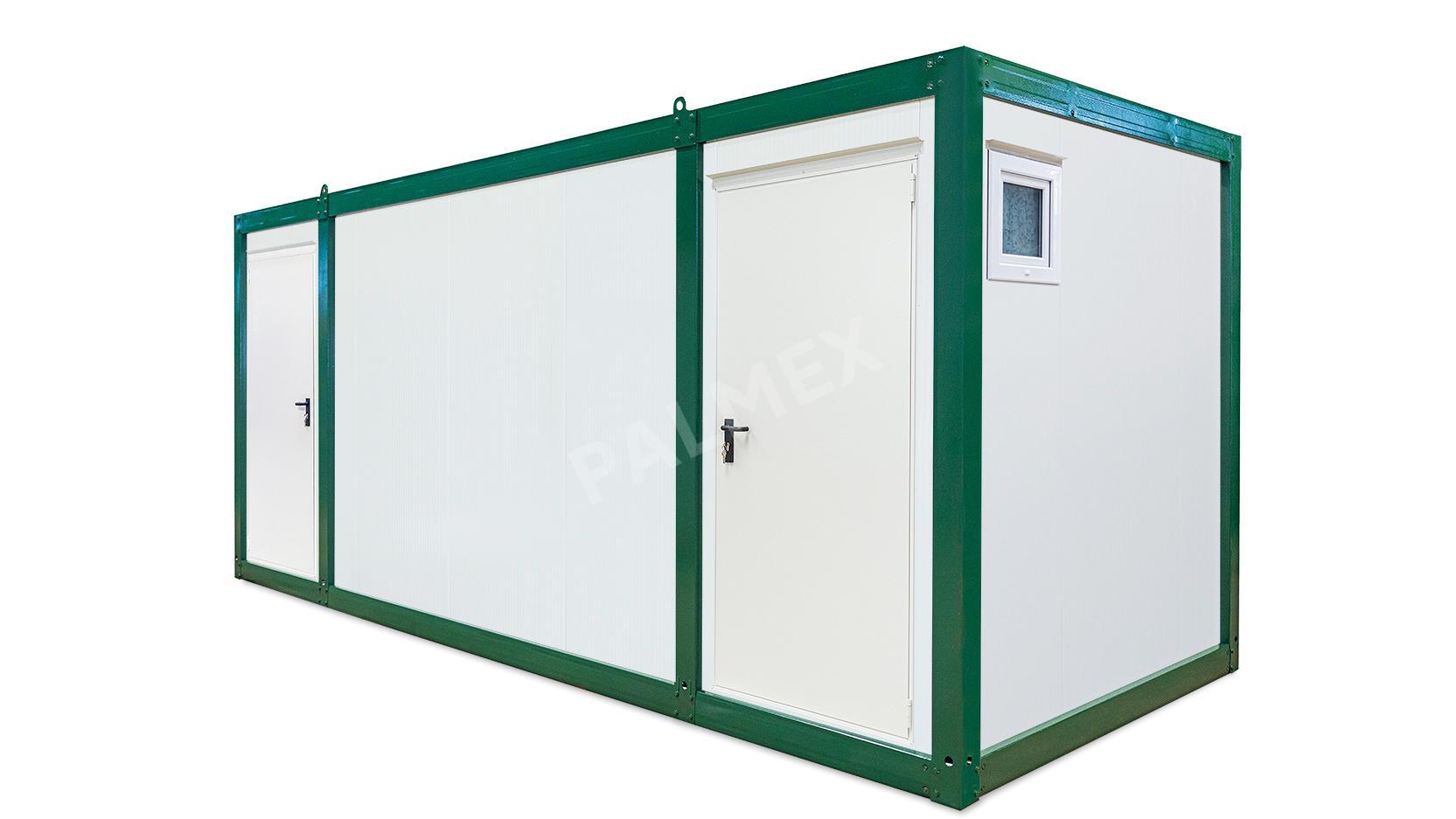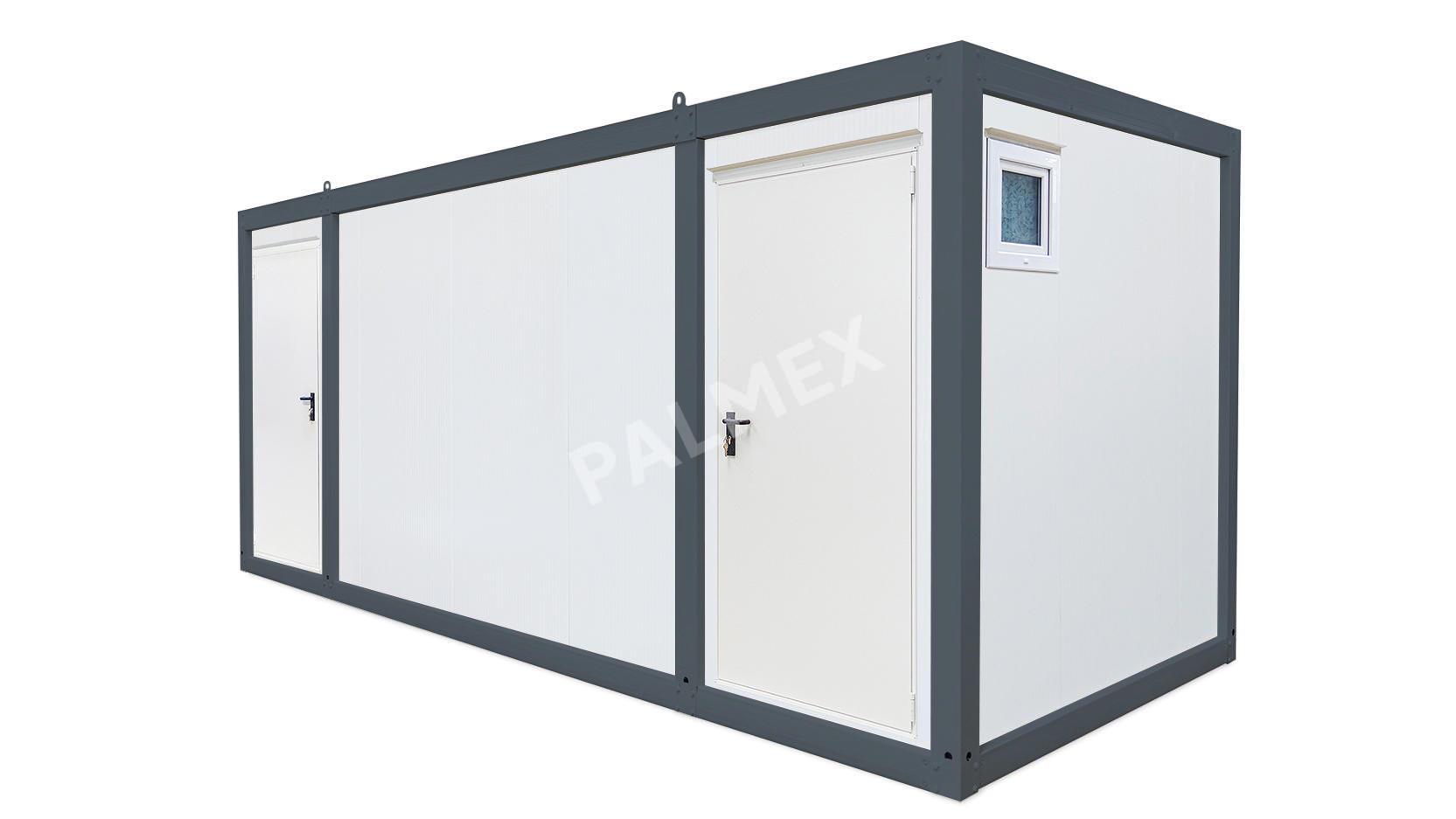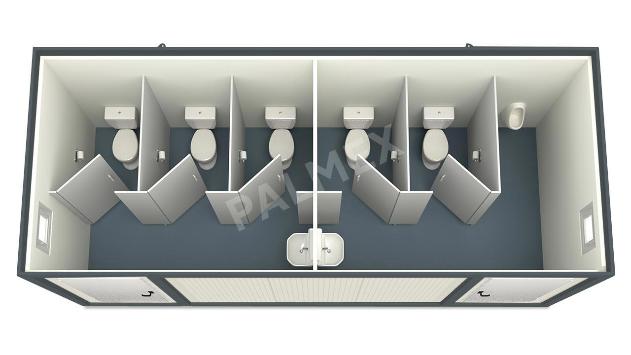 Acest Container Sanitar de 6m HI-FLEX cu 5 WC si 1 Pisoar echipat complet, din structura metalica si panouri sandwich este o solutie moderna si practica pentru asigurarea igienei in zonele in care nu exista facilitati sanitare permanente. Realizat din materiale rezistente la conditiile meteorologice extreme sau temperaturile ridicate sau scazute, este prevazut cu izolatie termica si fonica pentru a asigura confortul utilizatorilor.